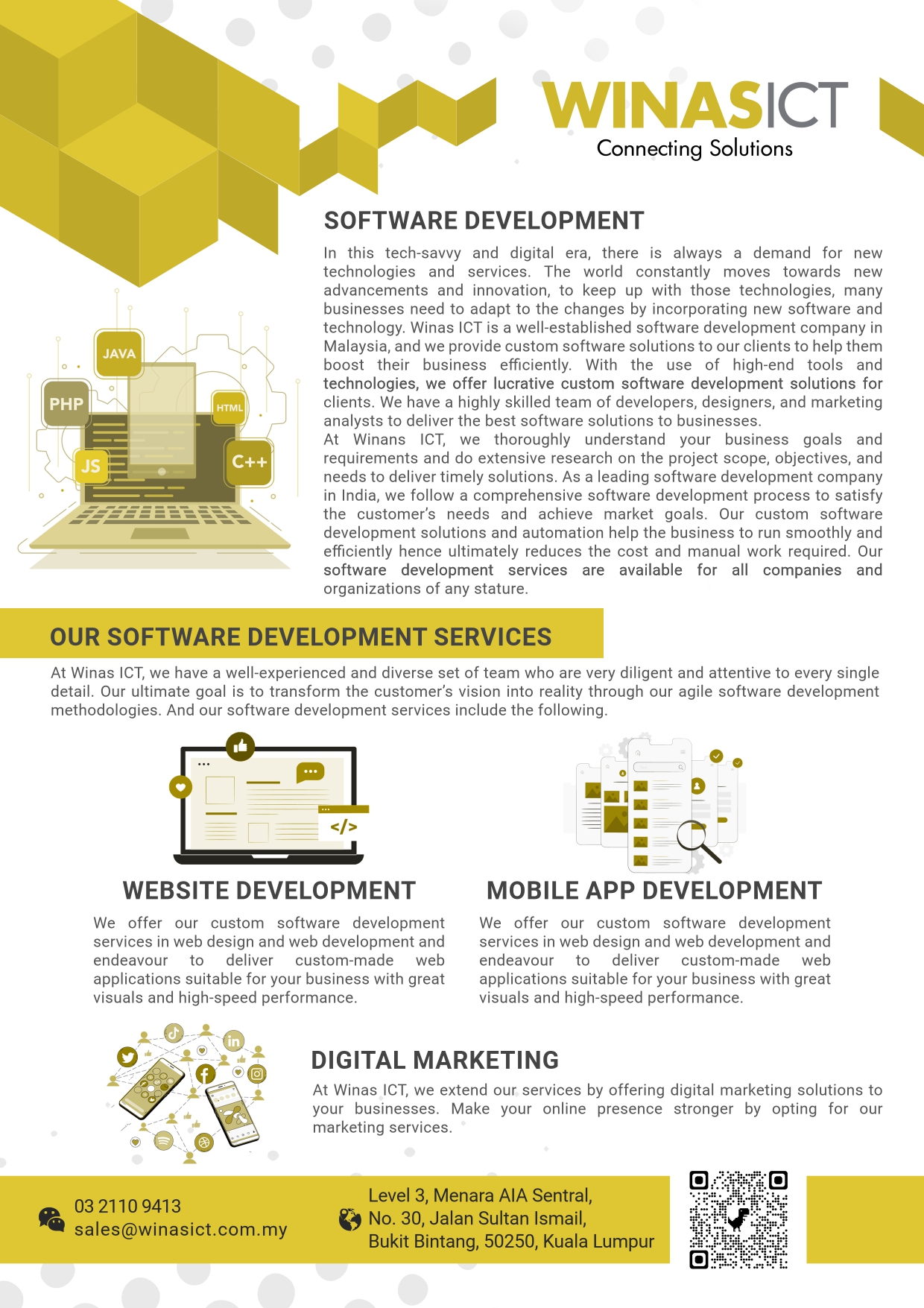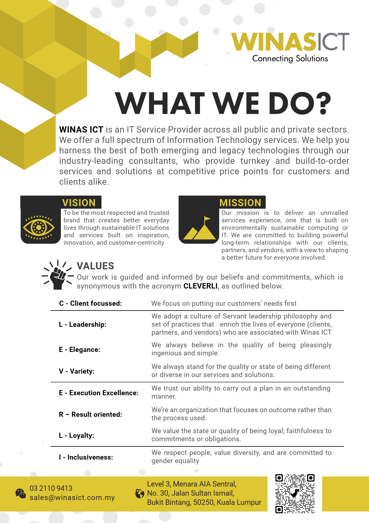 Plenitude IT takes pride in delivering a distinctive Company Profile Design and Content Writing solution for WINAS ICT Sdn Bhd, seamlessly merging visual aesthetics with compelling narratives. Our strategic approach incorporates WINAS ICT brand identity, ensuring a powerful impact on both digital and print platforms. The expertly crafted content, reflecting the company values and industry expertise, complements the modern design, reinforcing WINAS ICT corporate identity. With scalability at its core, this collaboration showcases Plenitude IT commitment to delivering comprehensive solutions that elevate brand presence and resonate with diverse audiences.